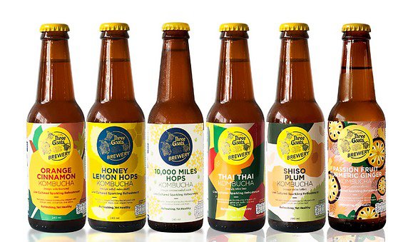 Three Goats Brewery in Bangkok specializes in fermented beverages like kombucha and ginger fizz. The company produces its beverages naturally and uses as many local ingredients as possible. Each 245ml bottle is said to have 6-11g of sugar post-fermentation and is low in calories (30-45 kcal)